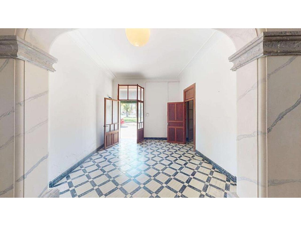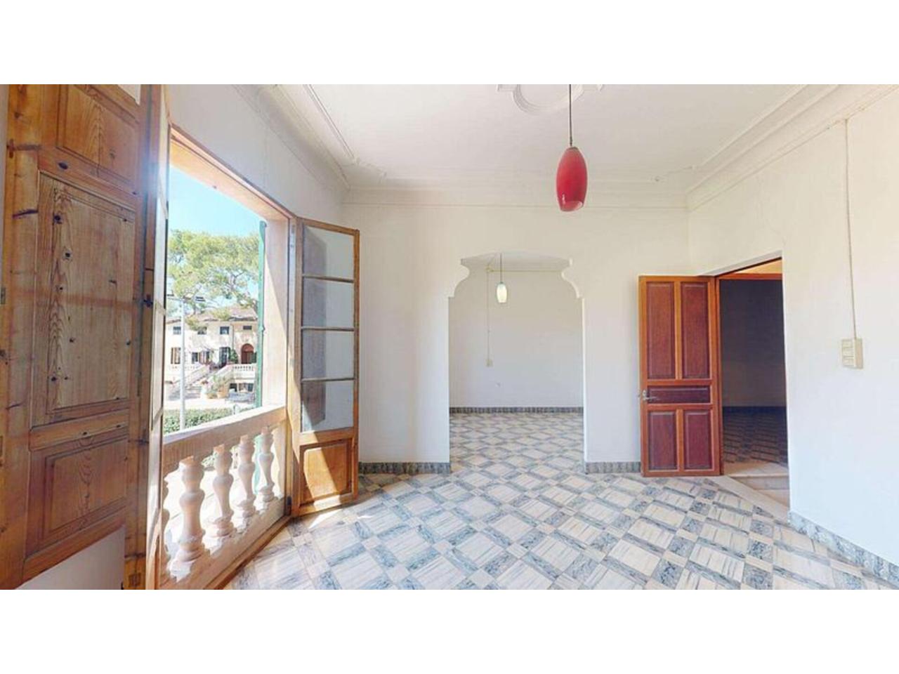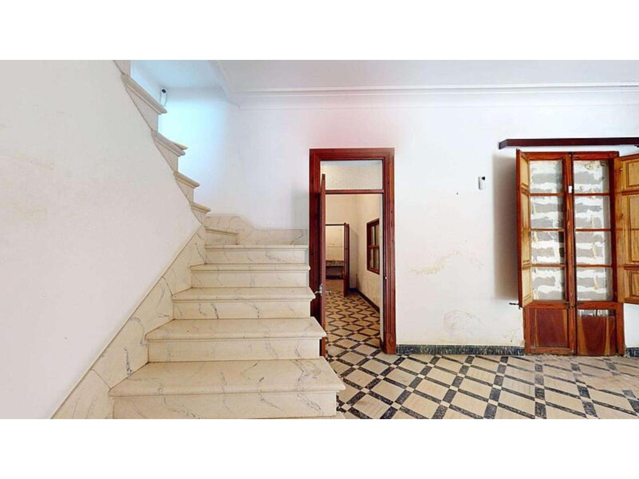 En planta baja, la vivienda nos recibe con un amplio vestíbulo de entrada que marca el carácter tradicional de la casa. A través de elegantes arcos accedemos al comedor, creando una distribución con personalidad y múltiples posibilidades de diseño. Desde esta zona se accede directamente a un generoso patio privado, ideal para crear una zona chill out, jardín mediterráneo, comedor exterior o incluso una pequeña piscina. Un espacio perfecto para disfrutar del clima mallorquín durante todo el año.